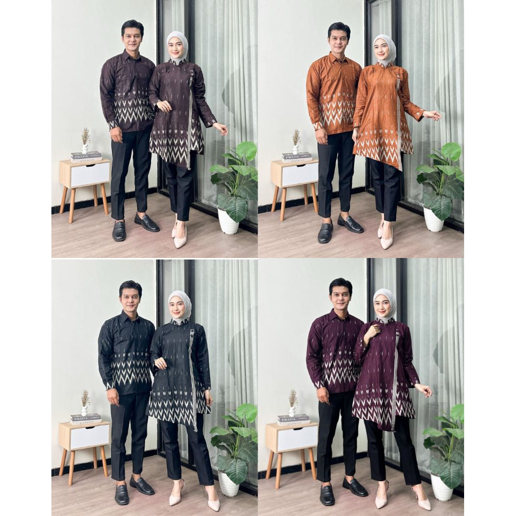 Batik Couple (BATIK TRUNTUM) - Baju Batik Couple Modern Tunik Resleting Belakang Kemeja Batik Lengan Panjang