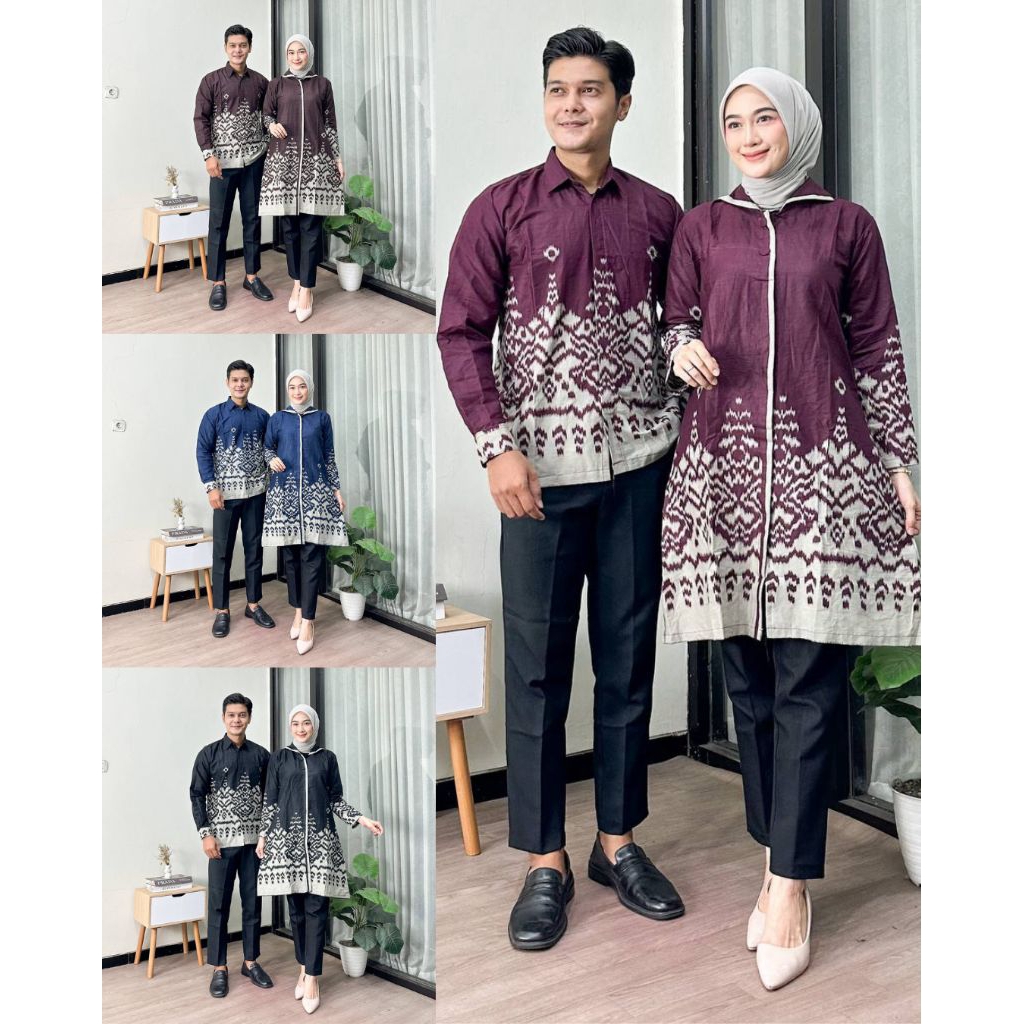 Batik Couple (BATIK TRUNTUM) - Baju Batik Couple Modern Tunik Kancing Depan Kemeja Batik Lengan Panjang