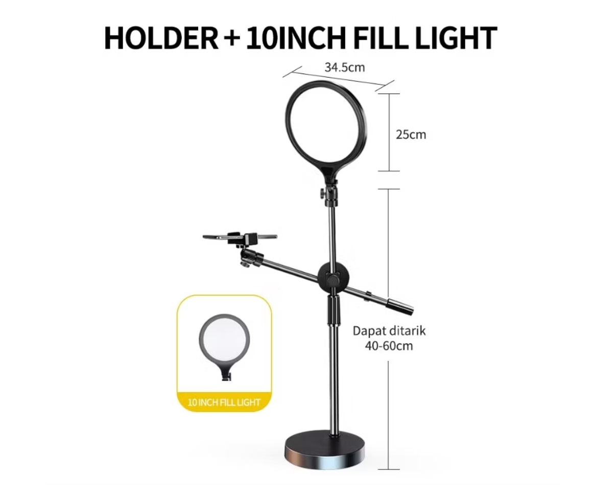 Phone Stand + Led Lampu Stand Holder Phone Holder Bracket 360° Lampu Fotografi