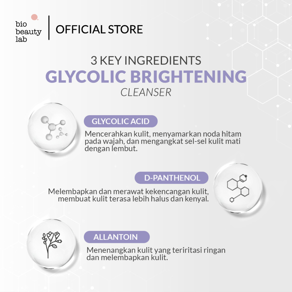 Bio Beauty Lab Glycolic Brightening Cleanser 100ml / 245ml Facial Wash Low PH Sabun Cuci Muka Glycolic Acid Glowing dan