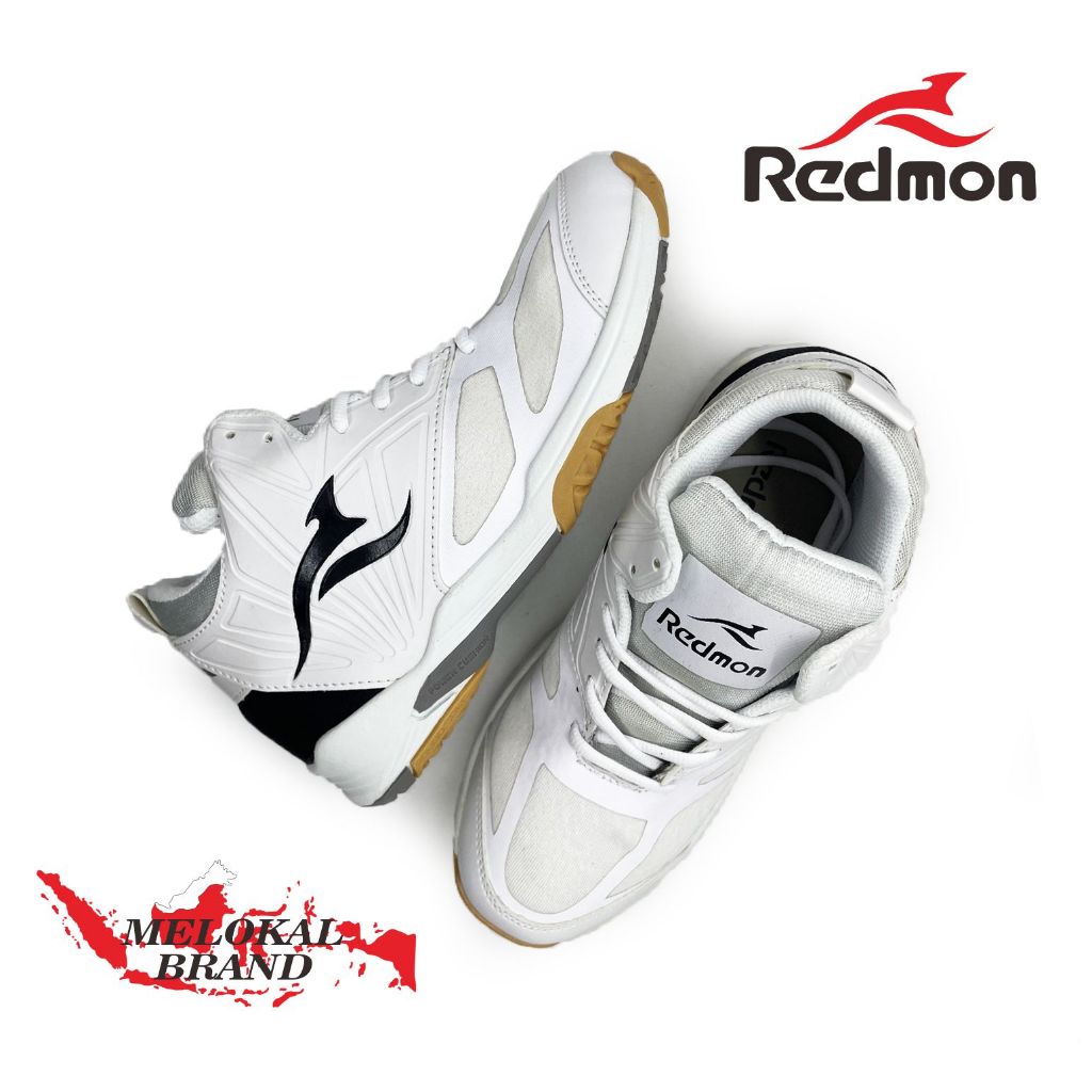 Redmon Sepatu Voli Hybrid Putih Abu Original Size 38-43 Sepatu Olahraga Badminton Basket Pria Wanita