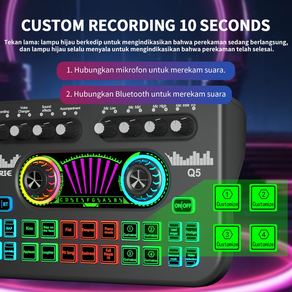 Onered Q5 Soundcard Original Paket Lengkap Mixer Bluetooth sound card for Streaming Langsung Siap