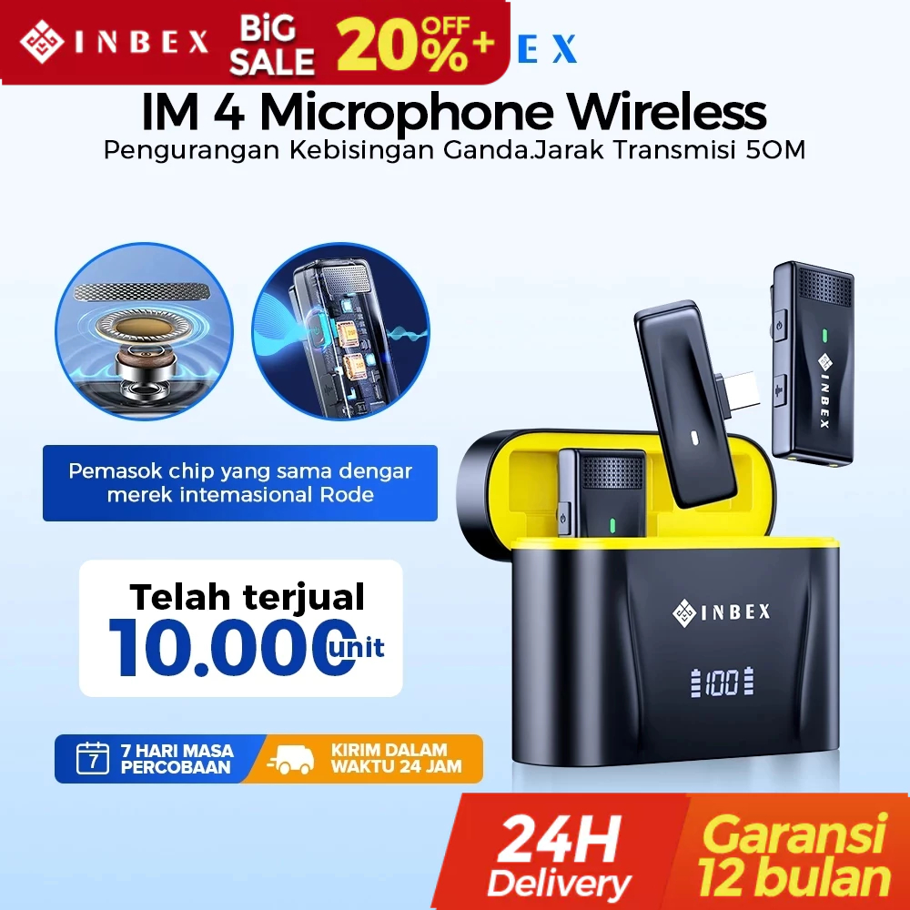 [Ship in 24h] INBEX IM4 Mikrofon Wireless Clip-on Dual Lavalier Bluetooth + Charging Case Mic Type-C