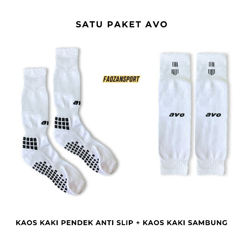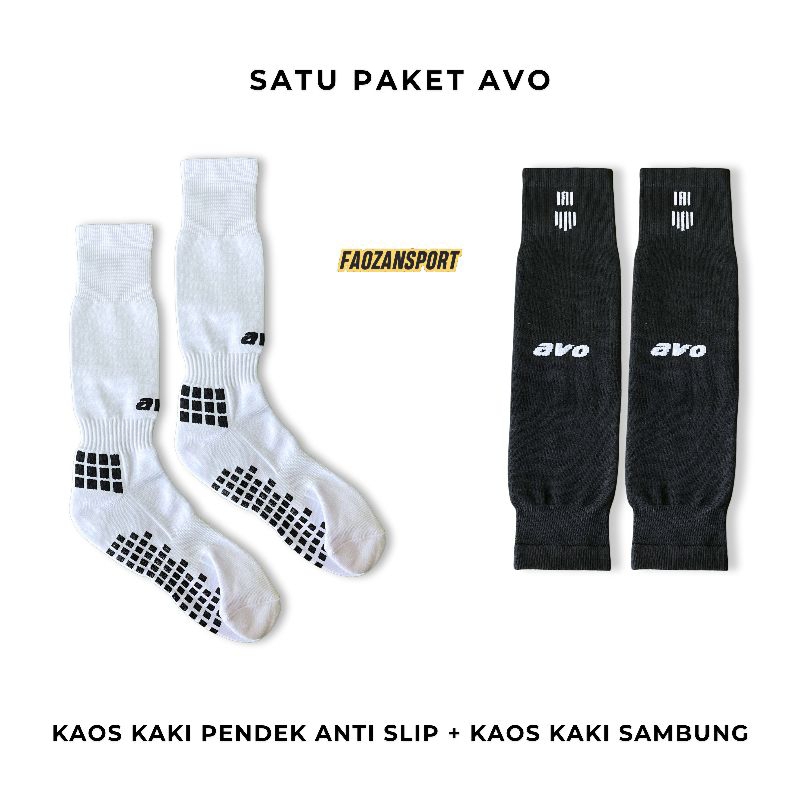 Kaos Kaki Avo Futsal Sepak Bola Anti Slip Pendek Panjang Sambung Dummy Slevee Hitam Putih Original