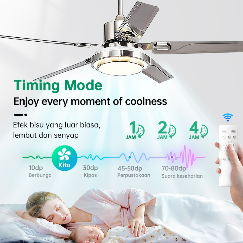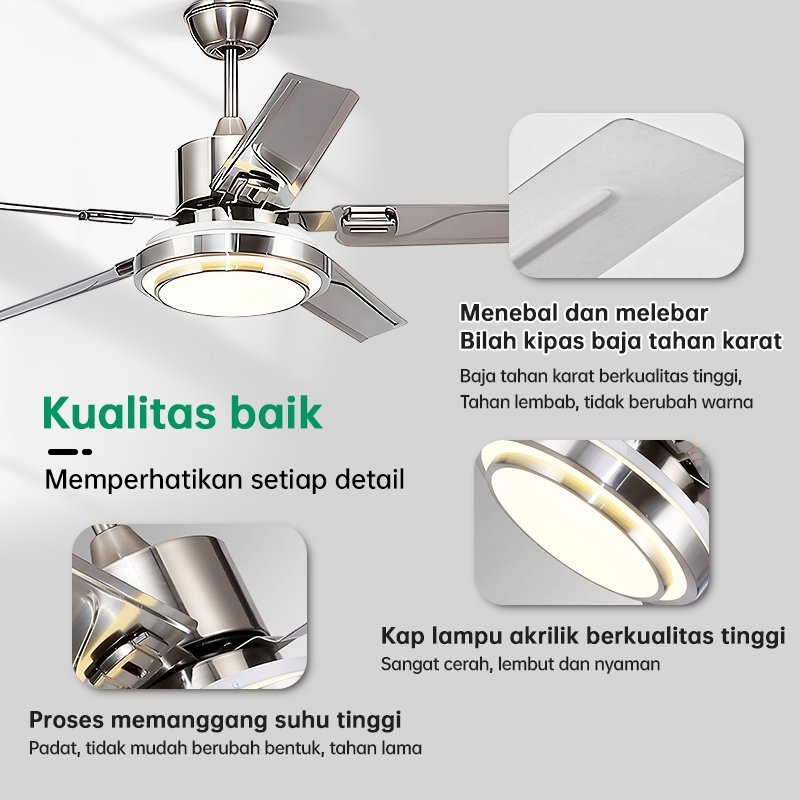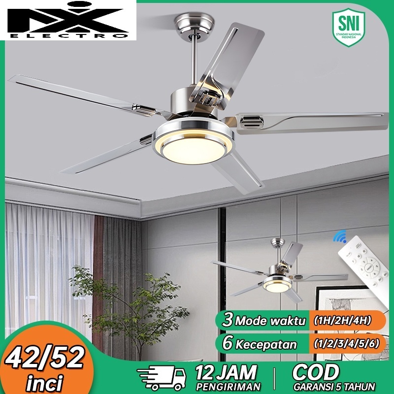 NIX Lampu kipas angin gantung plafon ruang tamu ern dan sederhana lampu gantung hias LED 2in1 3 warna 6 kecepatan 42/48/