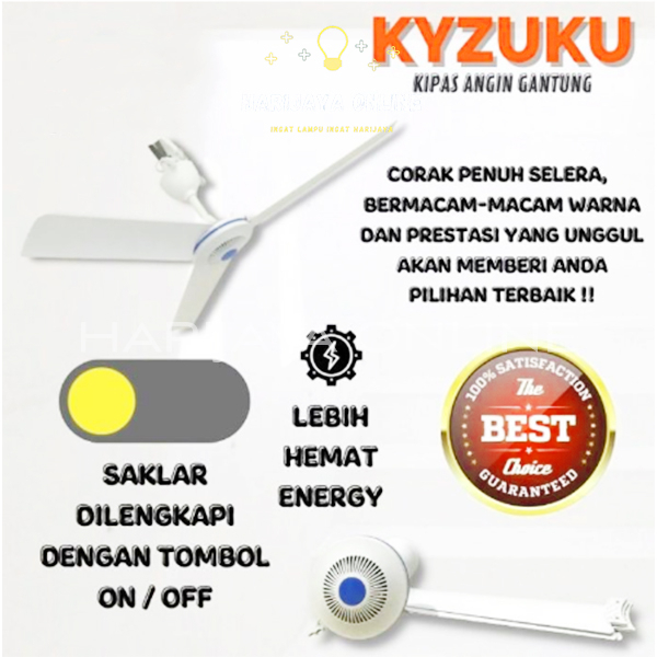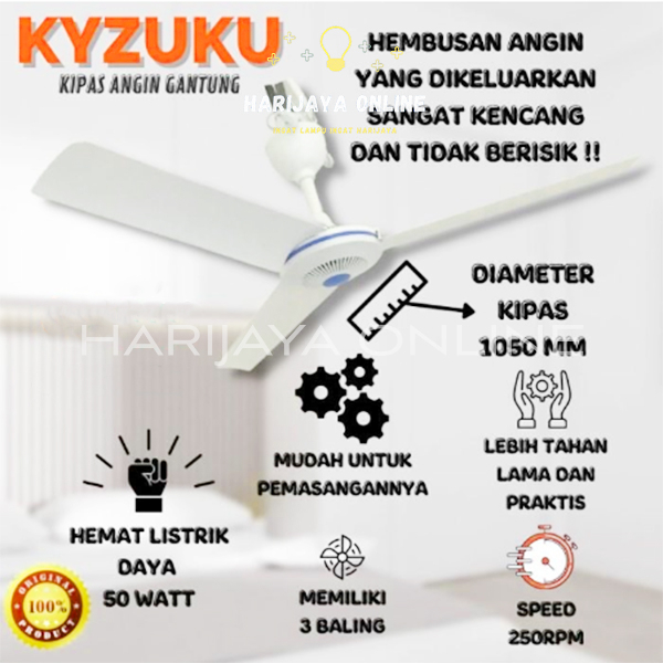 KYZUKU KIPAS ANGIN GANTUNG 50 WATT HY-1180 FAN PLAFON JUMBO 3 BALING