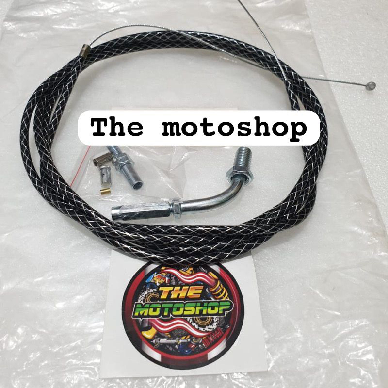 STOCK KABEL GAS MOTOR SERAT CARBON THAILAND Panjang 220cm Plus L Gas UNIVERSAL / tali selang gas spontan kontan motor s