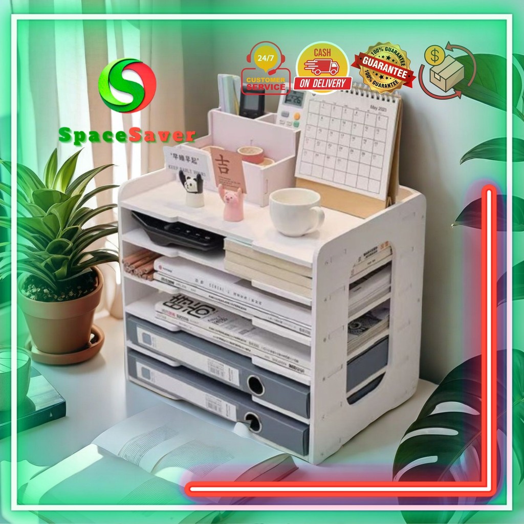 Rak Meja Desk Organizer Multi-sekat Penyimpanan File Kantor Dokumen Buku Majalah HVS Polio Rak Buku Serbagu