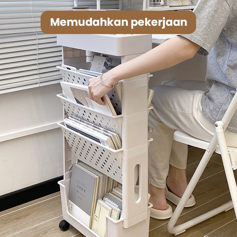 Muzy Rak Penyimpanan Buku/ Koran / Majalah Rak Buku Roda Rak Dapur Serbaguna Rak Susun Roda HSB634
