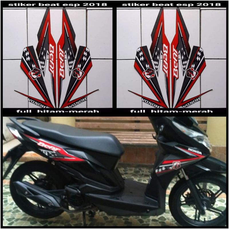 STIKER STRIPING LIS LES POLET PLAT PLISIR BODY MOTOR BEAT FI 2018 ESP ECO FULL HITAM MERAH