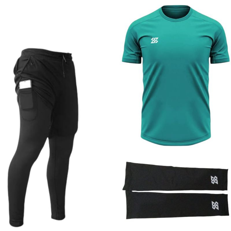 Stelan Jersey Baju Dan Celana 2in1 Panjang Olahraga Voli Lari Running Futsal Joging Fitnes Gym Pria Wanita