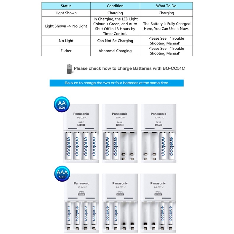Pengisi Daya Asli Panasonic Eneloop BQ-CC51 Dengan Baterai Isi Ulang AA/AAA 1.2V NiMH 1900mAh 800mAh Paket 4 (Putih)