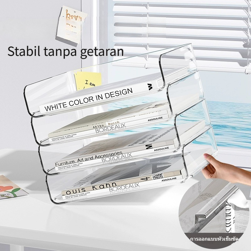 Susun Tray File Dokumen Susun / Rak Kertas Organizer Document Paper Meja Kantor Transparant, nampan dokumen plastik A4,