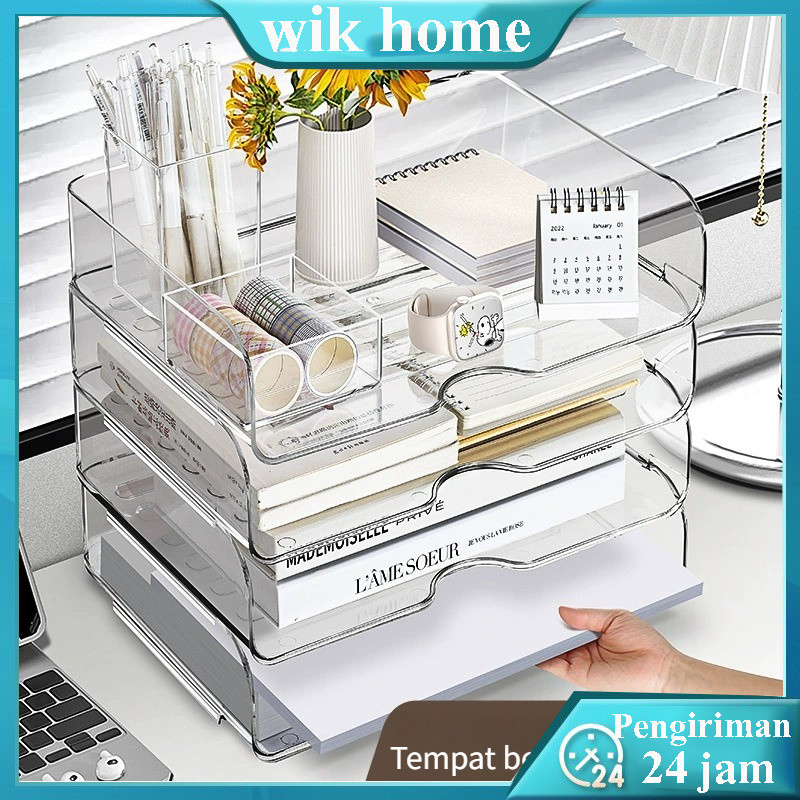 Stackable Storage Organizer 2 Tumpuk Tempat Dokumen Kertas Buku Alat Tulis Multifungsi Serbaguna Rak Dokumen Rak Kertas