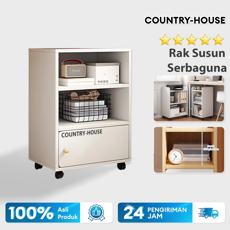 COUNTRY HOUSE Lemari Arsip Susun 2 / Susun 3 Dengan Roda Rak Susun Serbaguna Lemari Rak Buku