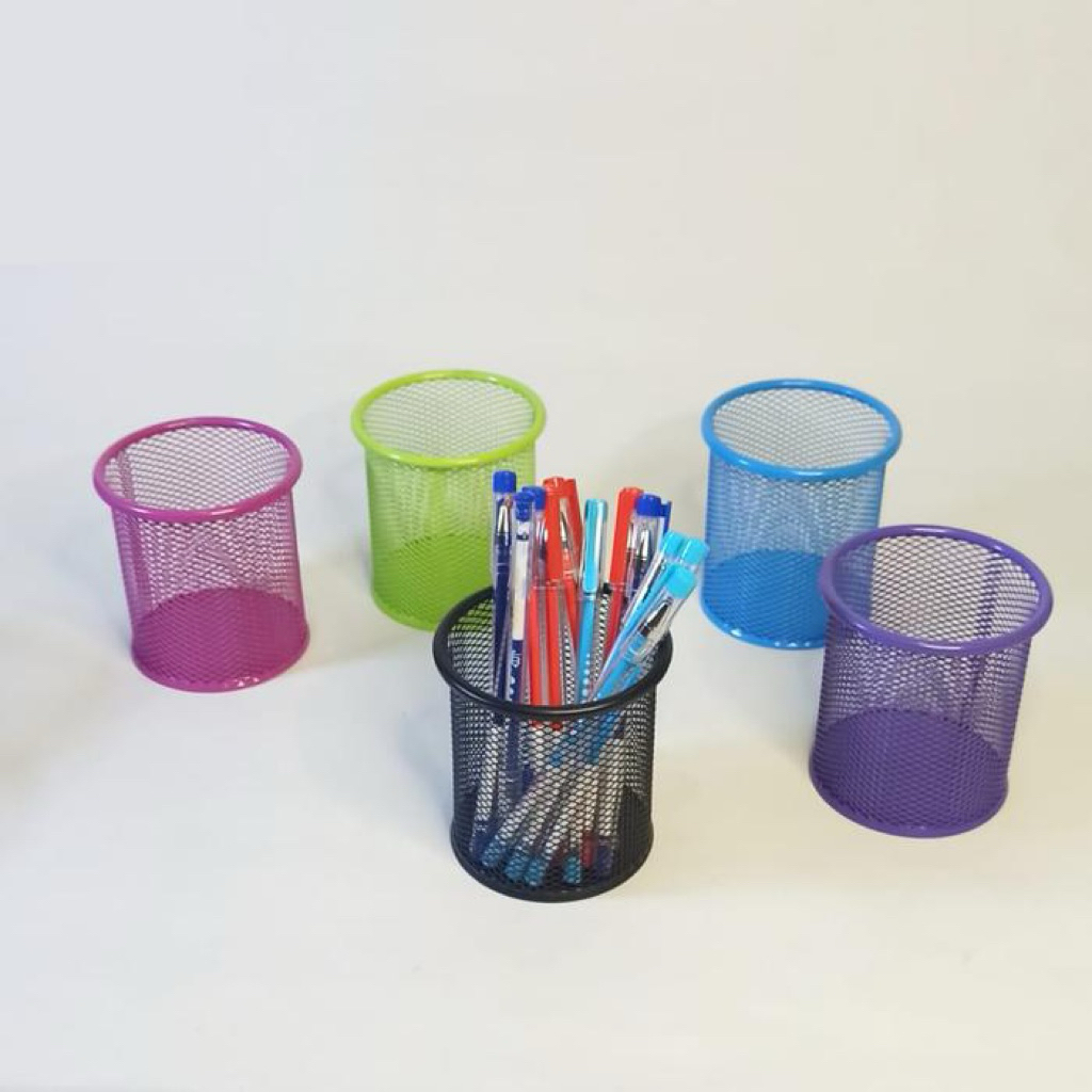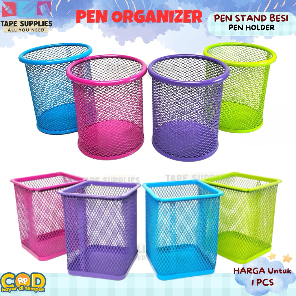 Pen Organizer Besi Bulat & Kotak – Pen Stand Holder Metal Jaring Meja Kantor Sekolah