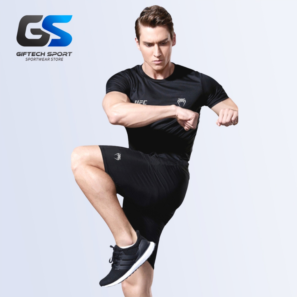 Baju Olahraga Pria 1 Set Kaos Lengan Pendek dan Celana Olah Raga UFC Dryfit Lari Jogging Futsal Badminton Volly