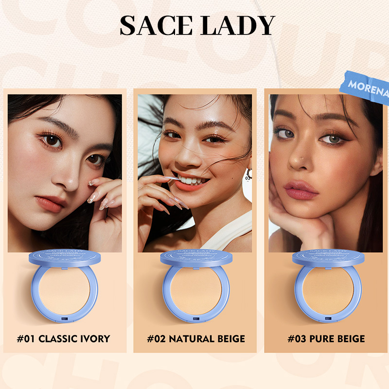 SACE LADY Oil Control Face Powder Waterproof Long Lasting Compact Setting Powder Makeup With Puff