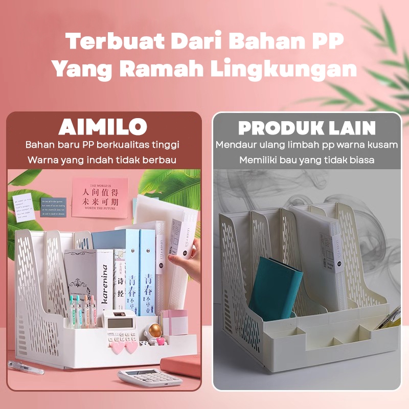 Aimilo Rak Buku Minimalis Aesthetic Tempat Buku Desktop Organizer File Serbaguna Box File Rak Buku Sekat