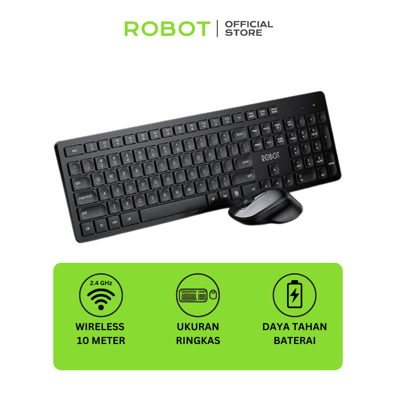 ROBOT Keyboard Combo Mouse Wireless KM4000 Keyboard Bluetooth Silent Klik USB PC Laptop Original Garansi 1 Tahun