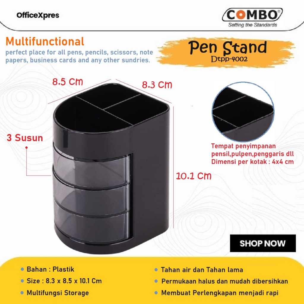 Tempat Pulpen Meja / Pen Holder / Rak Pensil / Tempat Alat Tulis Meja / Pen Stand 4002 Combo