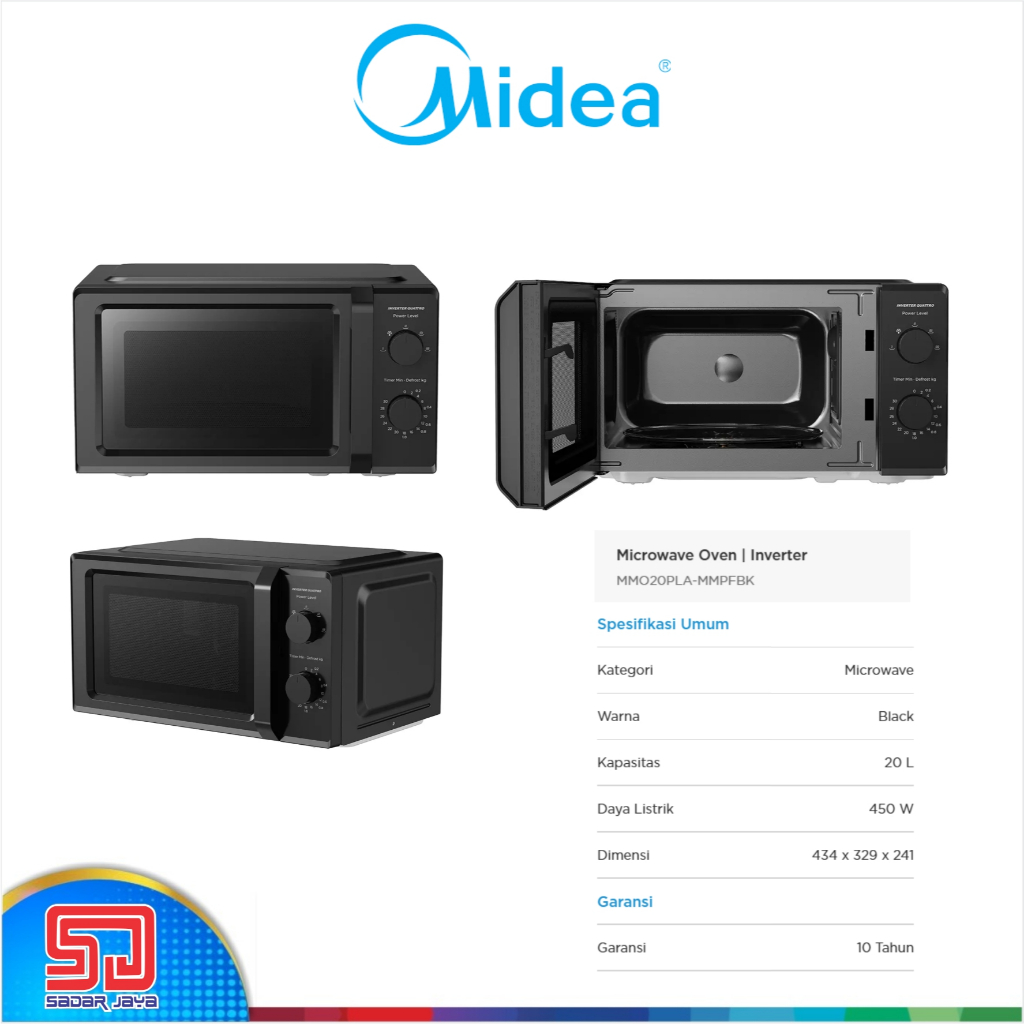 Microwave Midea MMO20PLA - MMPFBK 20 liter Oven Inverter Penghangat Makanan