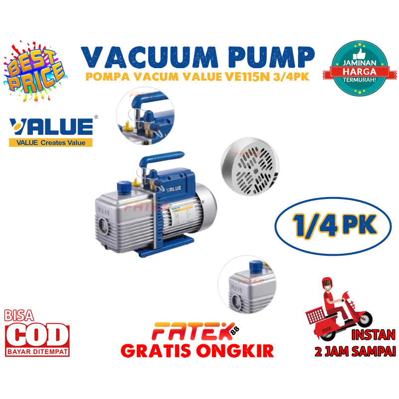 VACUUM PUMP VALUE VE115N 1/4HP VAKUM AC | VACUM PUMP VALUE VE 115 N | POMPA PAKUM FREON VE115 N 1/4PK