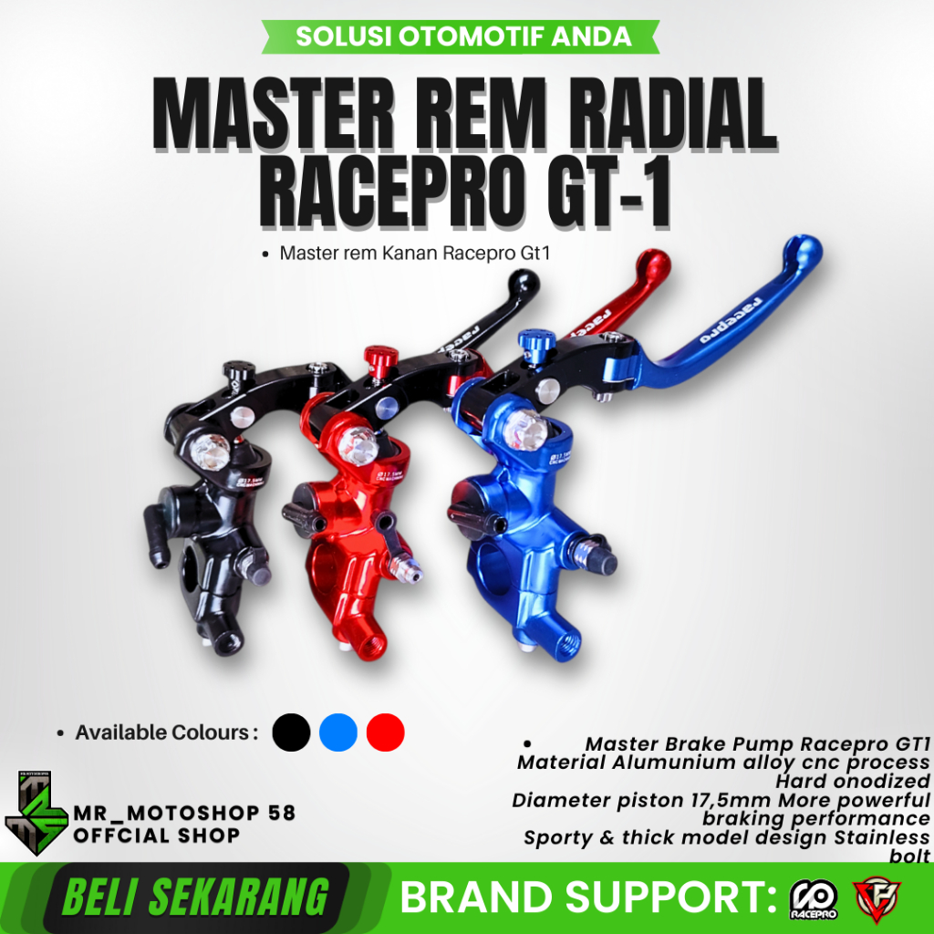 MASTER REM RACEPRO SINGLE RADIAL GT-1 17MM KOPLING KIRI RACE PRO GT1 ALUMINIUM T6 CNC BAUT STAINLESS
