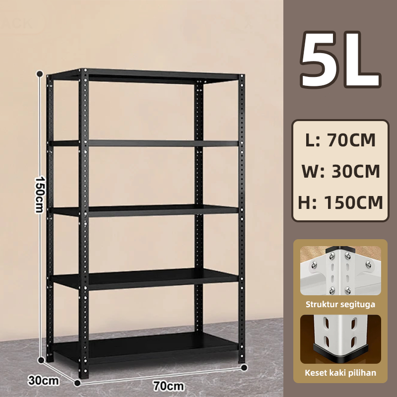 E-TIFE Rak Besi Siku 5/6 Susun Rak Gudang Rak Serbaguna Rak Supermarket Rak Dapur 100% Besi