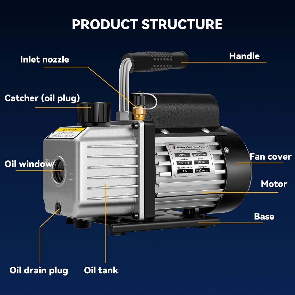 VICTOOL 3000W pompa vakum baling-baling putar portabel dan praktis pompa vakum AC 3.6m³/h alat listrik cerdas cocok unt