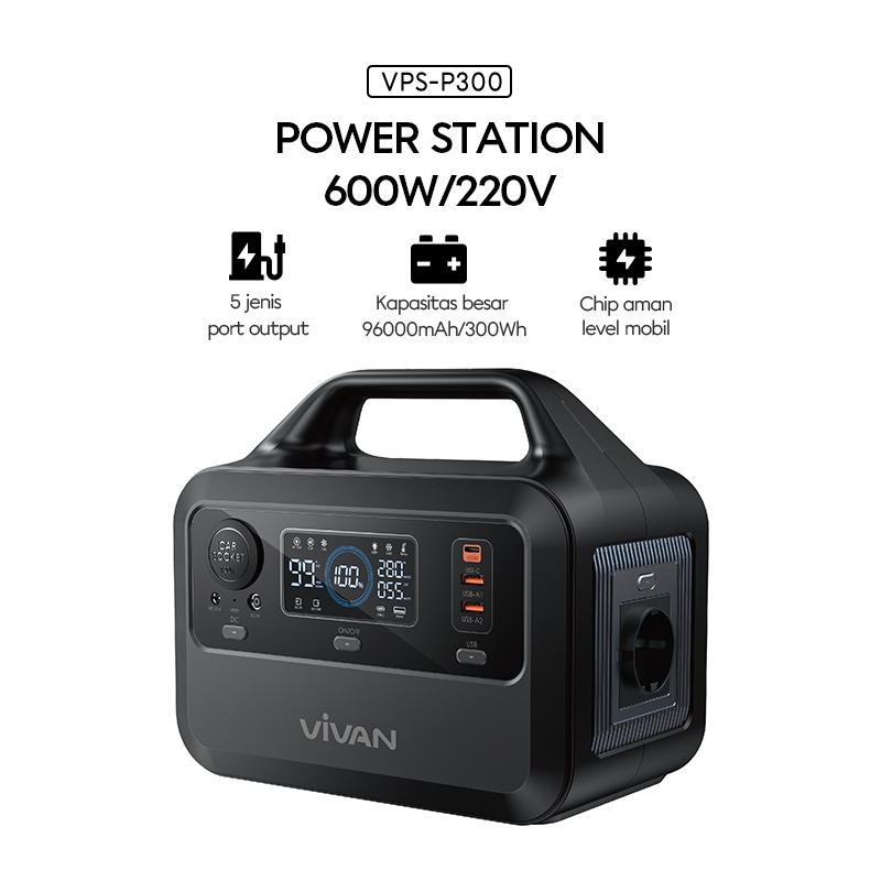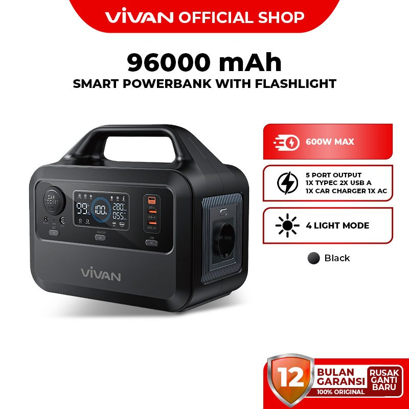 VIVAN VPS-P300 Power Station | Capacity 96.000 mAh Powerbank 600W/220V 5 Port Output Garansi 1 Tahun