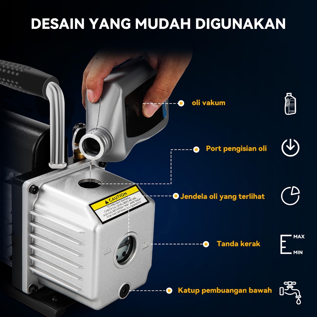 DISKOOM Pompa vakum listrik 2 dalam 1, motor satu tingkat 1/4 tenaga kuda, 200kpa, perbaikan AC, pendinginan kemasan vak