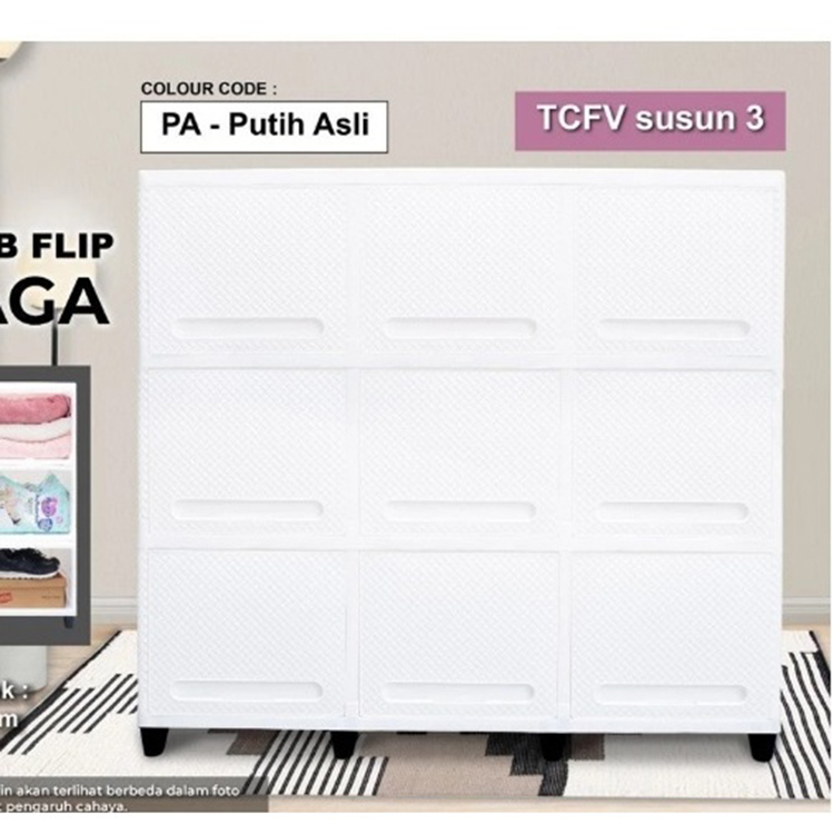 Club Lemari Plastik Triple Flip 3 Susun Meja TV Rotan Buffet TV Laci 9 Pintu Kotak Rak TV