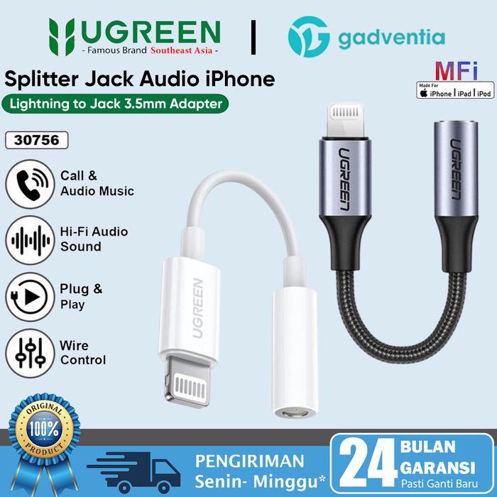 UGREEN SPLITTER CONVERTER LIGHTNING IPHONE 12 13 EARPHONE JACK 3.5MM - LIGHTNING-30756