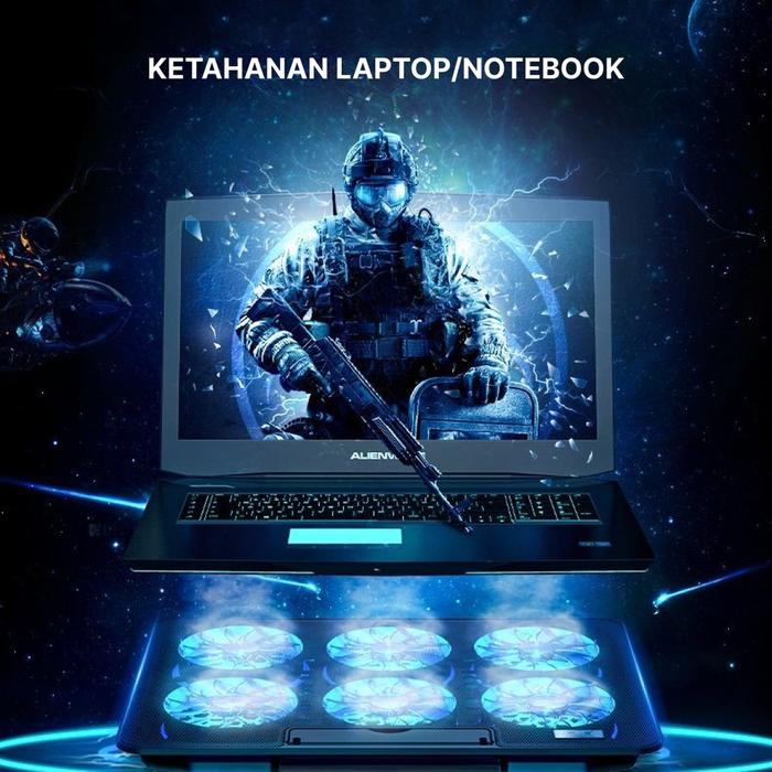 [PROMO] COOLING FAN STAND LAPTOP PORTABLE 6 FANS ADJUSTABLE SPEED TO LED SILENT NOISE COOLER FOLDABLE 17INCH DOUBLE PORT USB BESI KIPAS PAD PENDINGIN COMPUTER BESI KIPAS 6 FAN KAN BIASA