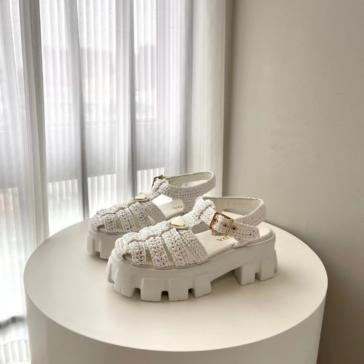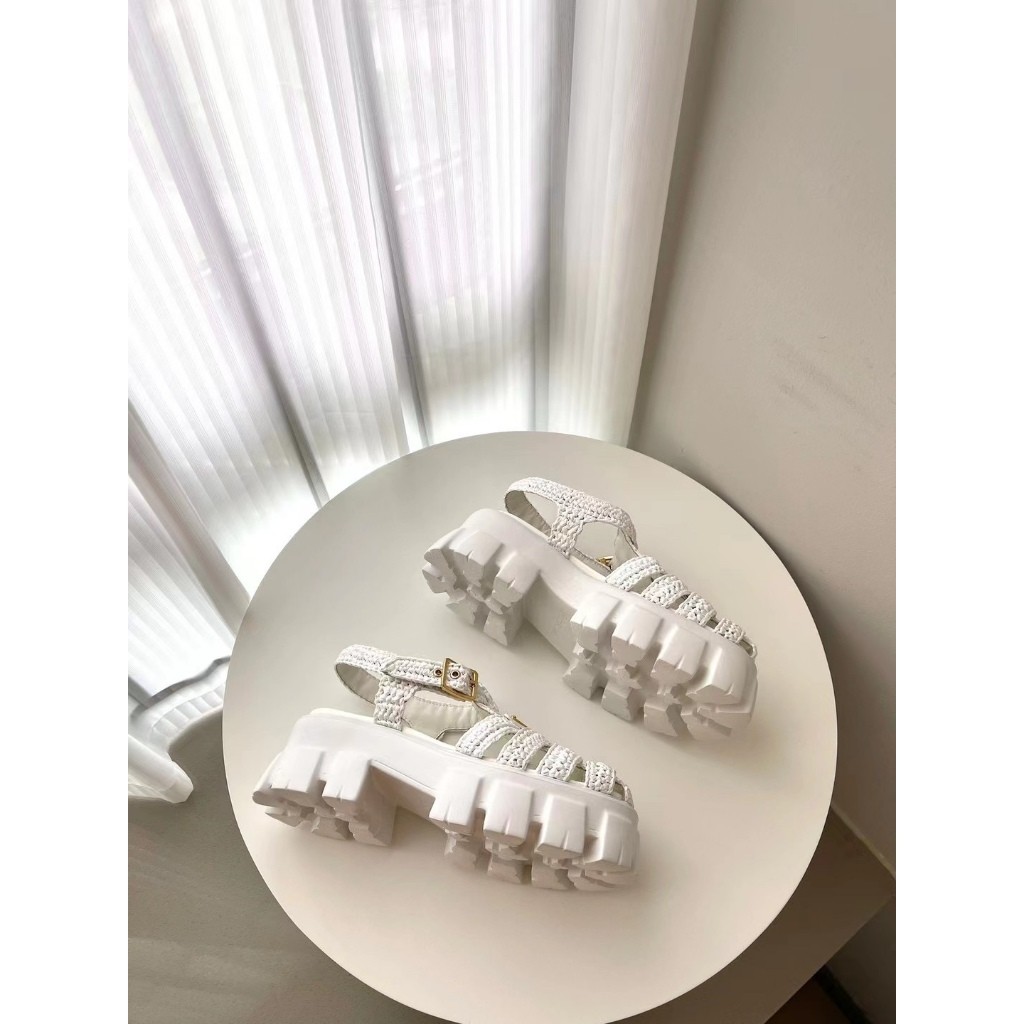 Sandal Platform Prada BARU Sepatu Roman Vintage Platform Ultralight Tenunan Romawi Zigzag