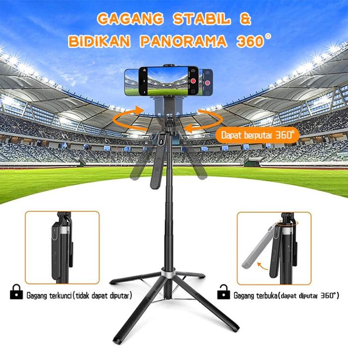 [PROMO] P185 185M TRIPOD BLUETOOTH SELFIE STICK REMOTE TRIPOD HP KAMERA DSLR TONGSIS DENGAN 14 ADAPTOR PORTABLE FLEXIBLE LAMPU LED SELFIE STICK 360º WIRELESS GIMBAL P185