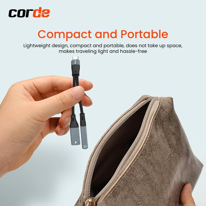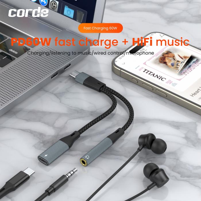CORDE TYPE C AUDIO SPLITTER & 60W CHARGER: TYPE C TO AUX 3.5MM ADAPTER CSA102 - CSA102