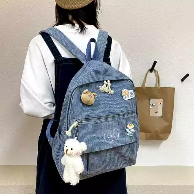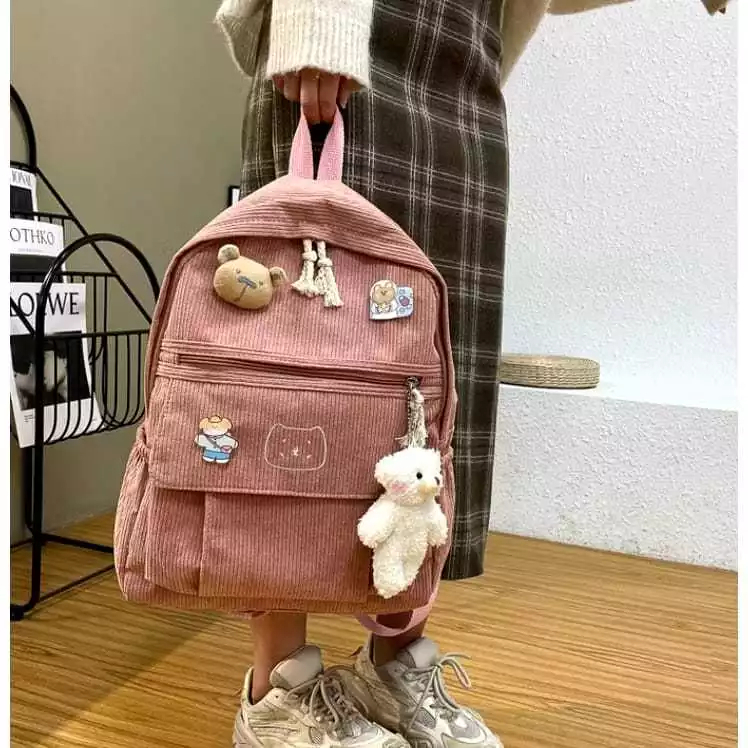 Tas Sekolah Anak Perempuan SD SMP SMA Corduroy Motif Beruang Seies Premium Tas Ransel Gendong Korean Style Best Seller