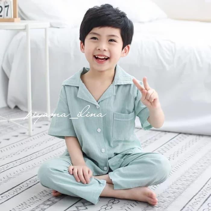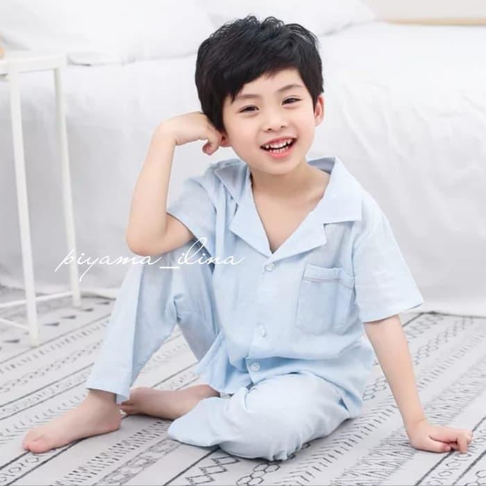 [PROMO] AN34 PIYAMA ANAK BAJU TIDUR ANAK BAHAN ORGANIK PREMIUM IMPORT BIRU KERAH 60