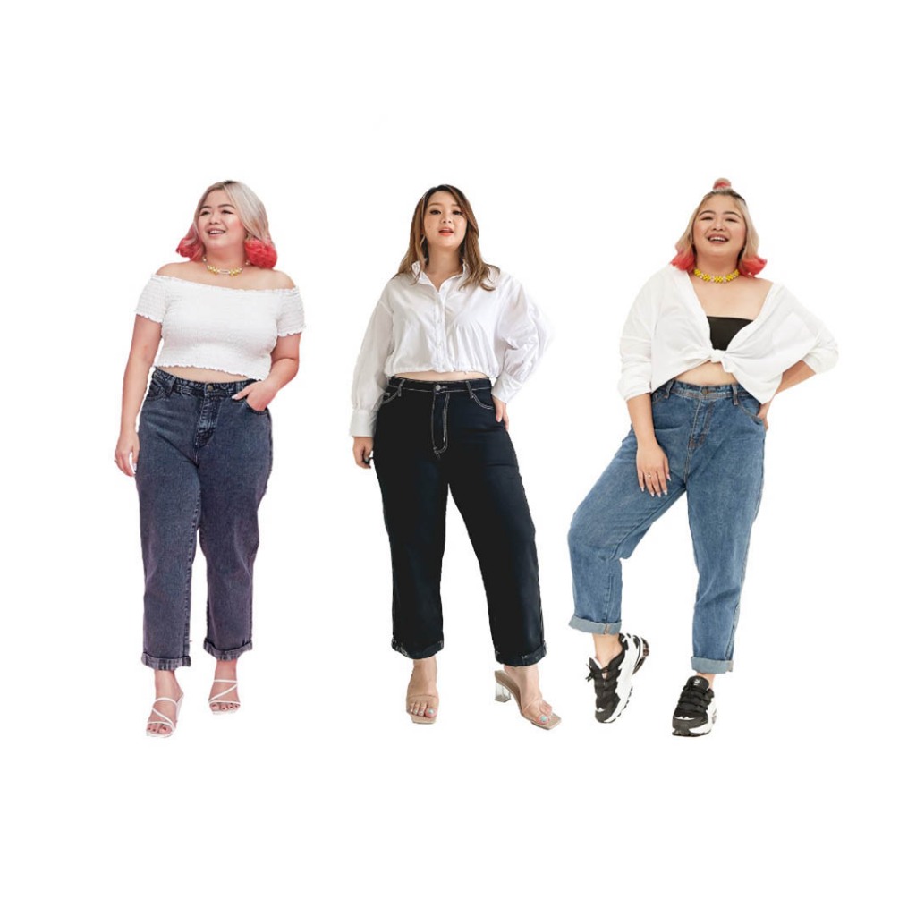 celana jeans wanita jiniso jumbo highwaist cutbray kulot sobek cargo pants jumbo Boyfriend Real Curvy jiniso official
