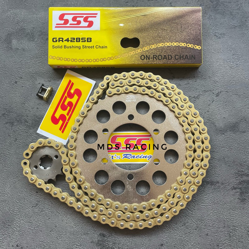 Gear Set Gir Set SSS ORIGINAL 428 Vixion New - NvL - Vixion old - Mxking150 - Byson - Xabre - R15V1/V2 Rantai Goll SSS 4