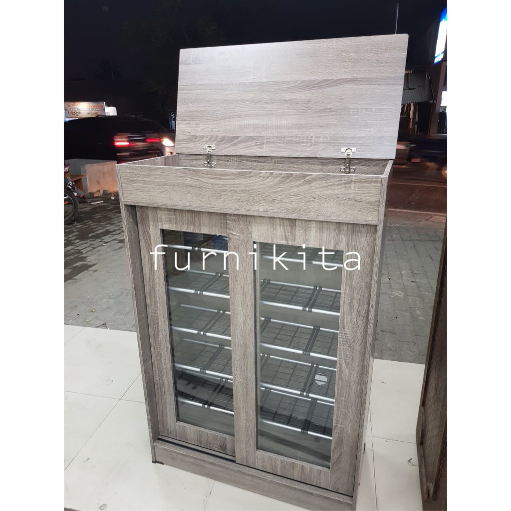 LEMARI SEPATU GESER 24 PASANG LUNAR HUGA 425 RAK SEPATU KACA
