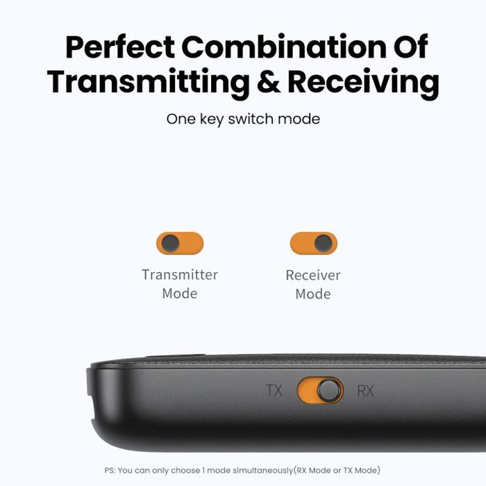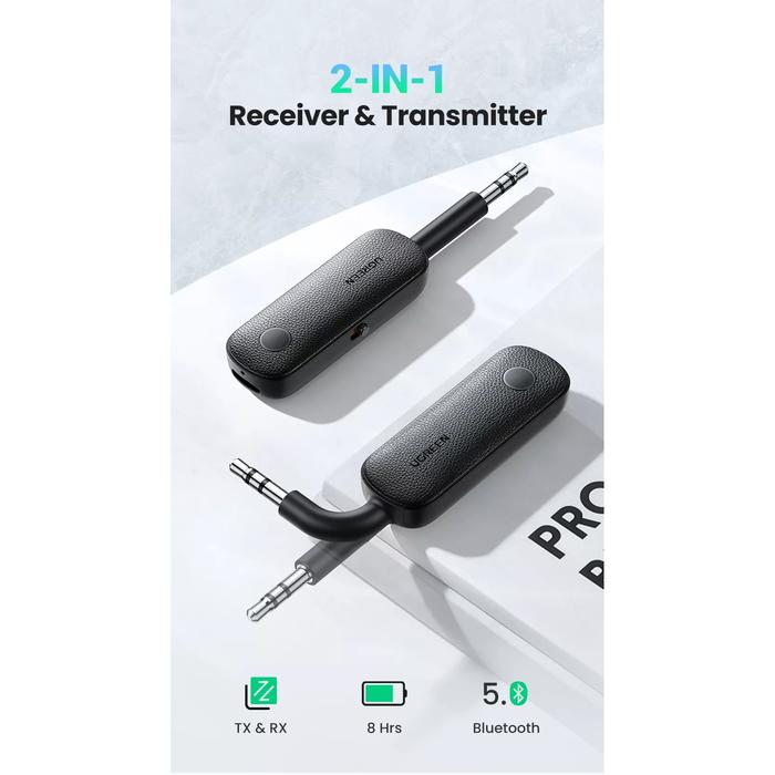 UGREEN 80893 BLUETOOTH AUDIO RECEIVER 5.0 TRANSMITTER 2 IN 1 WITH 3.5MM JACK AUX DUAL CONNECTION RX TX MODE TRANSMITER