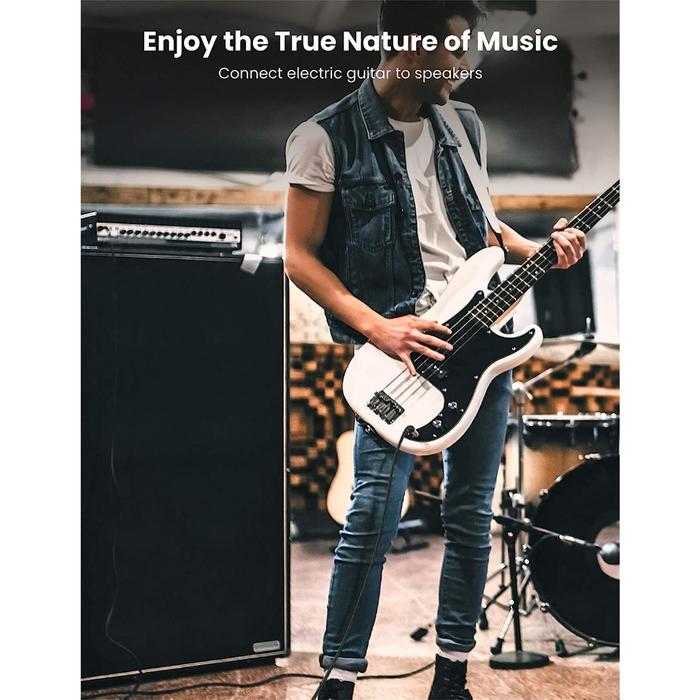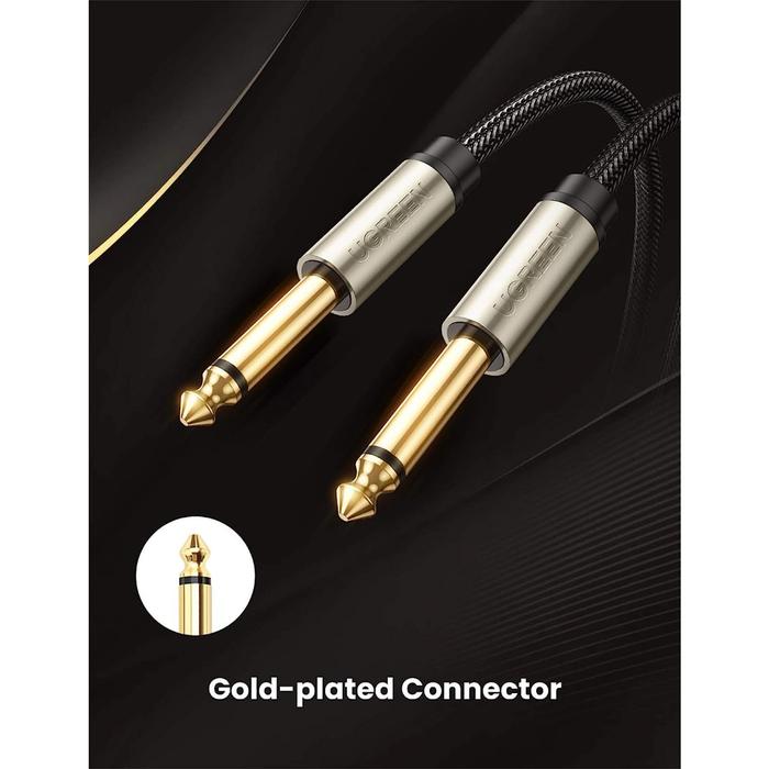UGREEN KABEL CONNECTOR AUDIO 6.5MM TO 6.5MM CABLE AUX TS AUDIO STEREO MONO GUITAR 6.35M MALE NYLON BRAIDED UNTUK MICROPHONE GITAR AMPLIFIER SPEAKER - 10636 1M