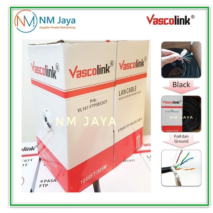 [PROMO] VASCOLINK KABEL LAN OUTDOOR FTP CAT5E 305 METER 4PAIRS WARNA HITAM ORIGINAL POE SUPPORT KULIT KABEL TEBAL KERAS DILENGKAPI ALUMINIUM FOIL DAN GROUND ORIGINAL NOT SPECIFIED
