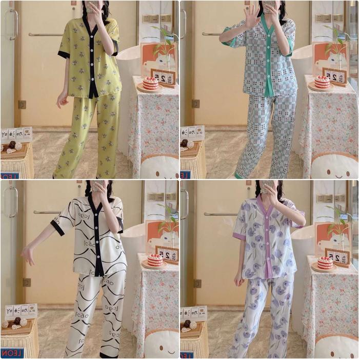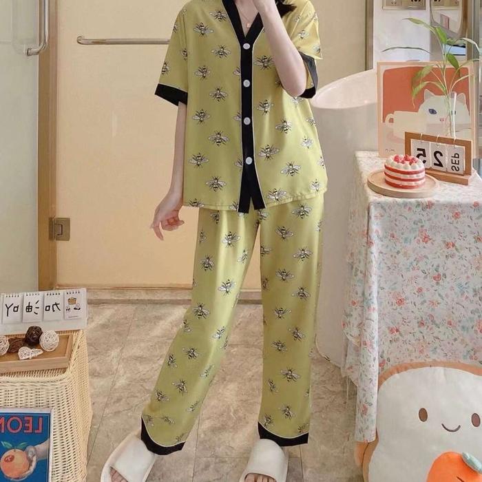 [PROMO] DW73CP PIYAMA SATIN WANITA PREMIUM BAJU TIDUR SATIN CP KEKINIAN KOREAN STYLE DW73CPLEBAH M