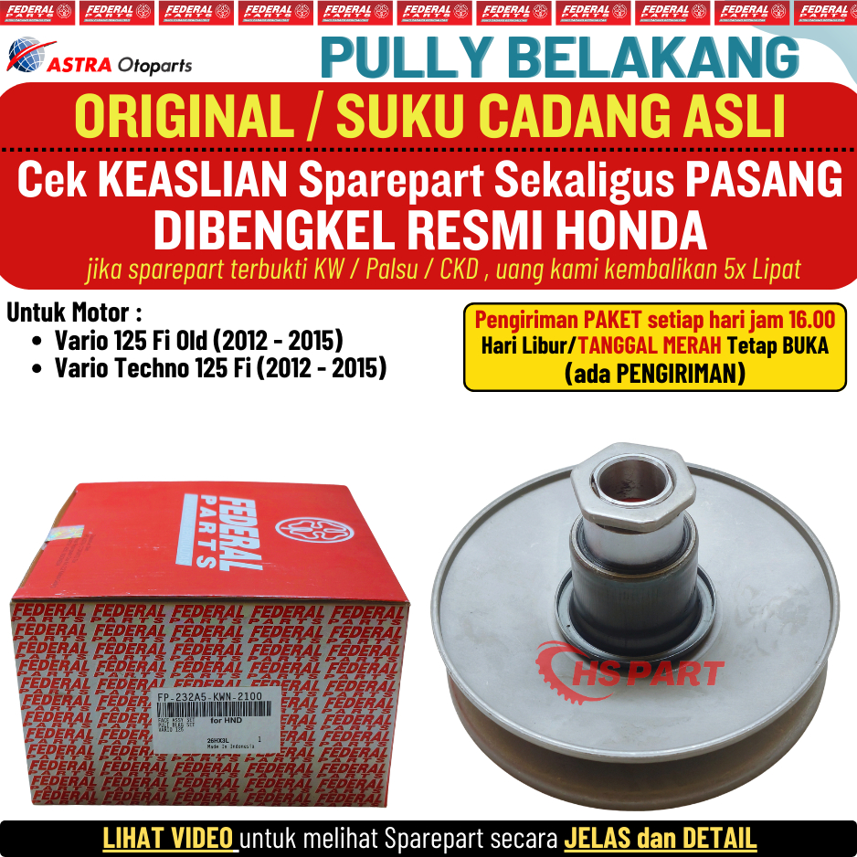Pully Pulley Pulli Belakang Vario 125 Old KZR Ori Original Federal Aspira Astra Otoparts
