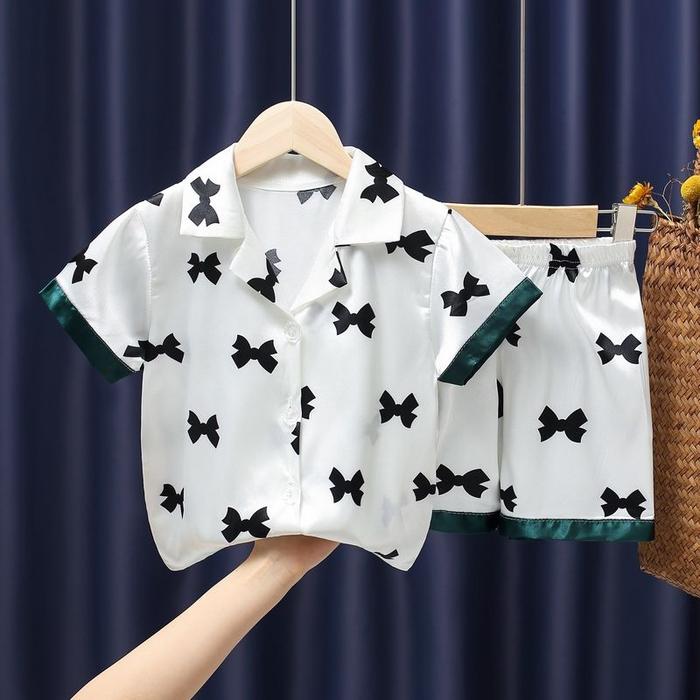 [PROMO] AN 14 AN 19 PIYAMA ANAK BAHAN SATIN SUTRA SILK IMPORT PREMIUM KUCING PUTIH 100