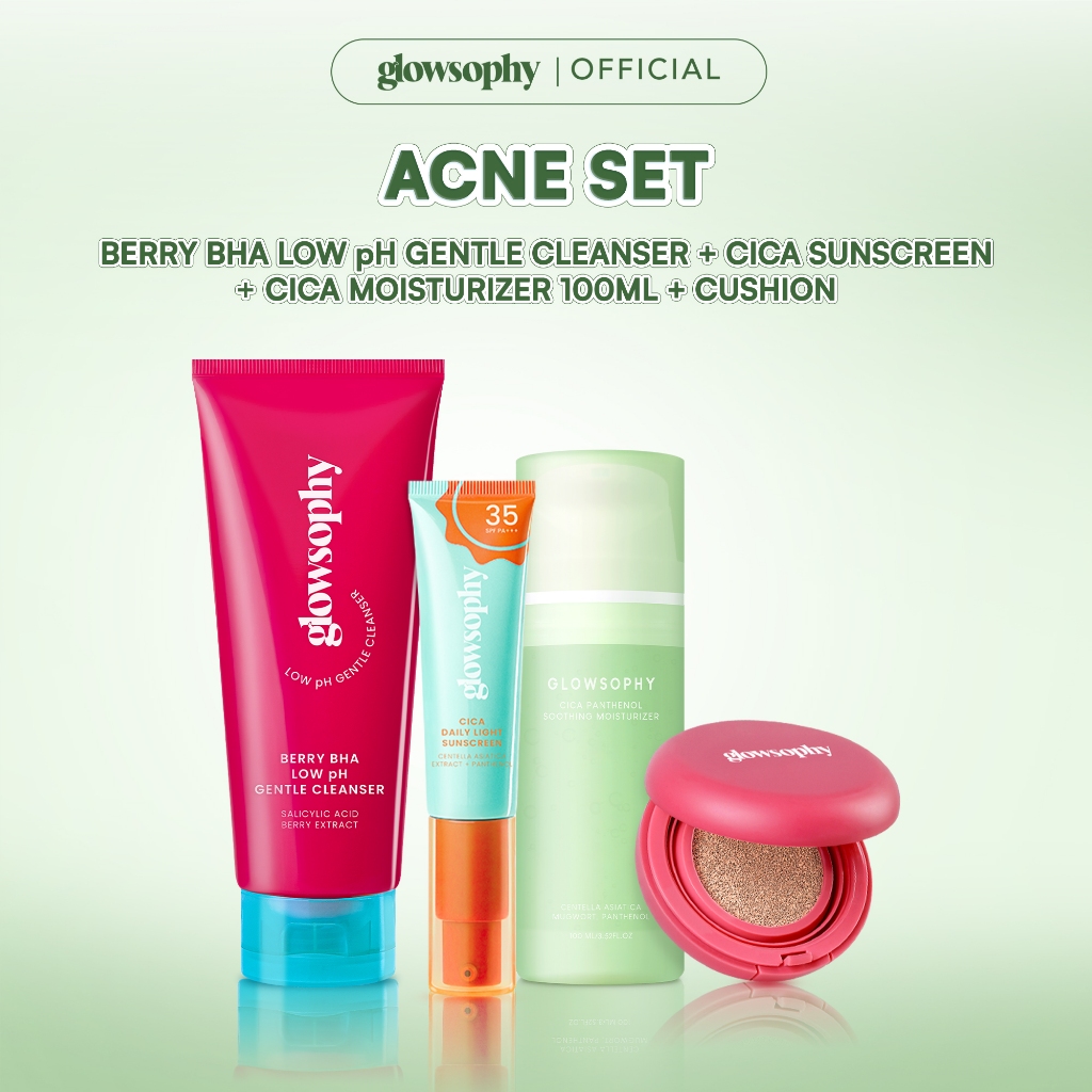 Glowsophy 4in1 Complexion Set Gentle Cleanser + Moisturizer 100ml + Sunscreen + Cushion